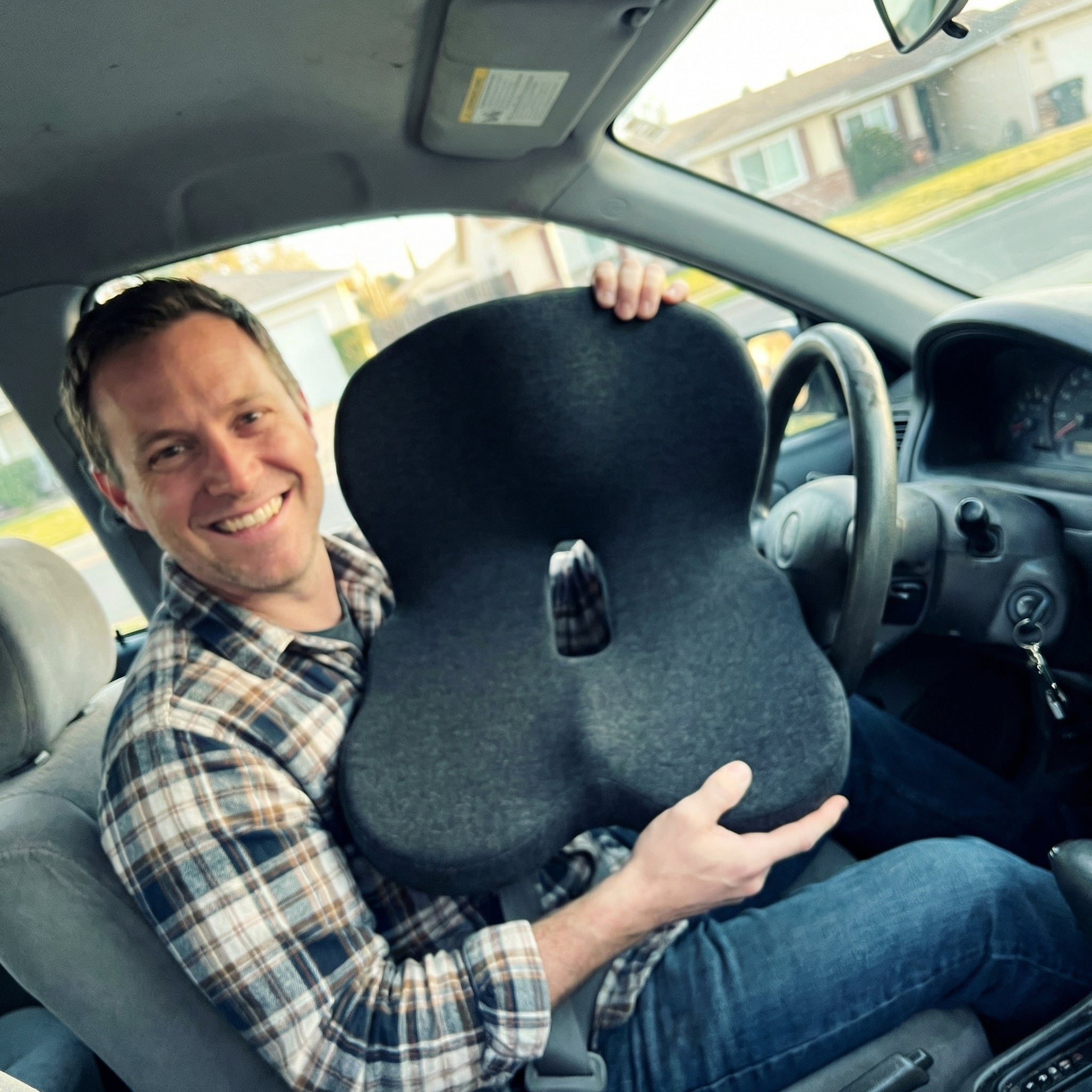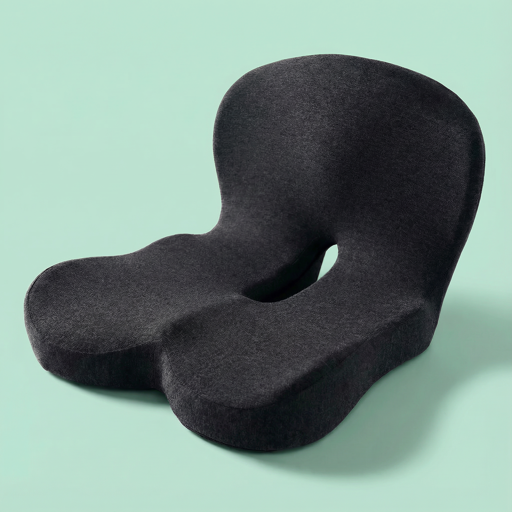 When you sit on a standard surface, your spine compresses. Your tailbone bears 40-90% of your body weight. Your lumbar curve flattens against the chair back.